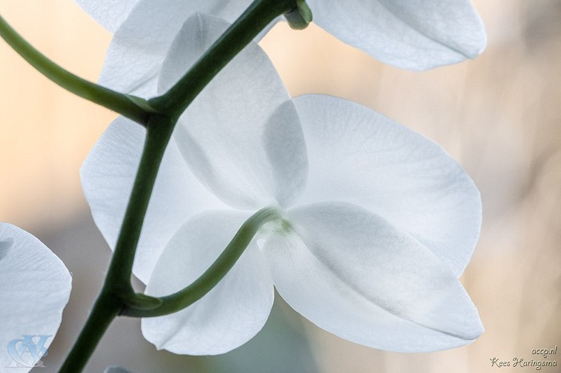 Niet veel fotografen maken een foto vanaf deze positie. Toch levert de achterkant van een doorschijnende bloem vaak een verassend leuke plaat op. Zo ook bij deze orchidee.
